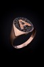 Υπέροχο δαχτυλίδι chevalier με λευκές και μαύρες πέτρες, απο ρόζ χρυσό 14 καρατίων στολισμένο με μονόγραμμα της επιλογής σας