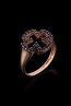 Ιδιαίτερης ομορφιάς δαχτυλίδι σε σχήμα σταυρού, απο ρόζ χρυσό 14 καρατίων και μαυρες ζιργκόν πέτρες.