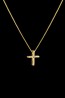 Ένας σταυρός λουστρέ αυστηρής γραμμής απο κίτρινο χρυσό 18 καρατίων στολισμένος στο κέντρο του με ένα λευκό διαμάντι